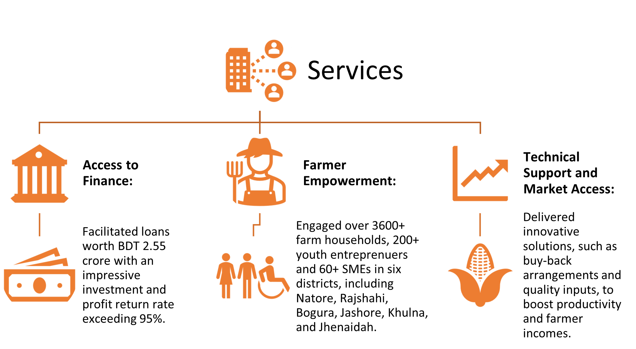 Align financial support with agricultural seasonal cycles to ensure timely funding for farmers and agri-SMEs. Conduct crop-specific needs assessments to identify eligible farmers for financing. Throughout the financing period, continuous monitoring is carried out to ensure proper utilization and impact.